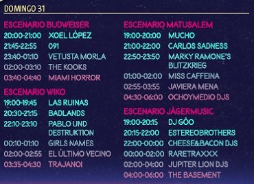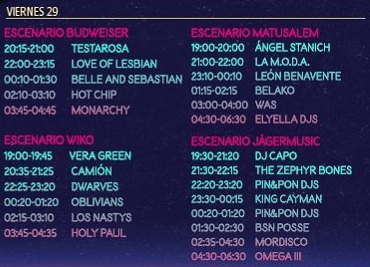 HORARIOS Conciertos Festival CULTURA INQUIETA