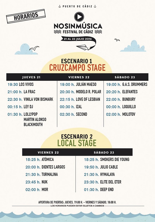 Del 21 al 23 de julio / NO SIN MÚSICA / Puerto de Cádiz (Cádiz)