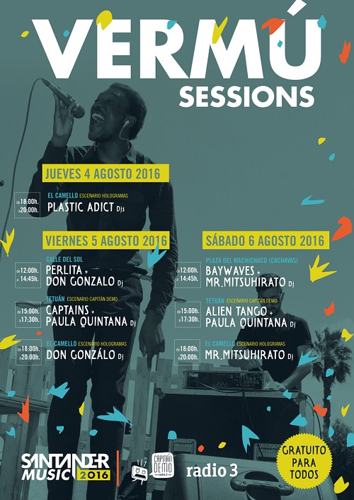 Las “Vermú Sessions” son conciertos en directo y sesiones de DJ’s que se celebrarán durante las jornadas del festival en horario diurno y con acceso libre y gratuito. Un circuito urbano en el que los asistentes visitarán lugares típicos de la ciudad al ritmo de grupos emergentes, hasta conducirlos al recinto principal. Otra forma de disfrutar del festival y la música y de descubrir otros rincones de la ciudad de Santander.