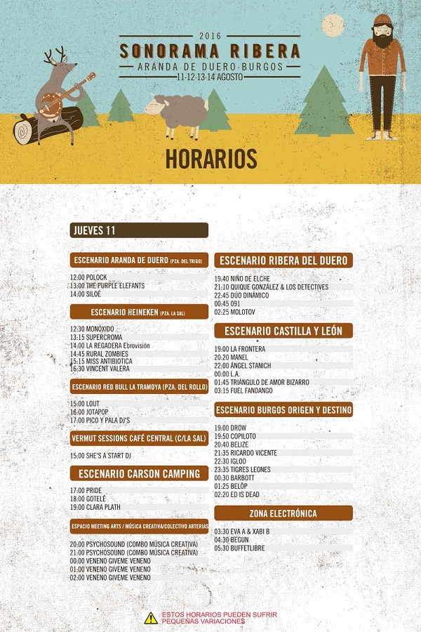 El jueves empiezan los platos fuertes. Para empezar habrá que madrugar para ir a ver a Polock a la Plaza del Trigo a las 12:00. Los conciertos matutinos son siempre muy especiales en el Sonorama y no suponen ningún esfuerzo a pesar de la falta de sueño. Ya por la tarde cuesta recomendar algo porque es un cartel al que no se le puede poner ni un pero. No nos vamos a perder a Niño de Elche, uno de los artistas más especiales que ha surgido en los últimos años, ni a Quique González, que ha vuelto a sacar uno de los discos del año. Y repartiremos nuestro tiempo entre lo mejorcito de la música de nuestro país desde hace muchos años (si amigos, nos pasaremos por el escenario donde estén Manolo y Ramón). Ricardo Vicente, Ángel Stanich, Triángulo de Amor Bizarro, 091 y El Dúo Dinámico son imprescindibles en nuestra ruta. Y como postre Molotov. A los mejicanos les tenemos mucho cariño desde que les vimos por primera vez en nuestro país en un Festimad (hace años ya..). Este verano están haciendo un extensa gira por Europa y siguen en forma.