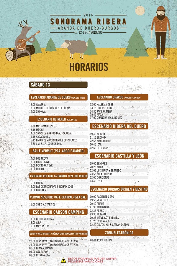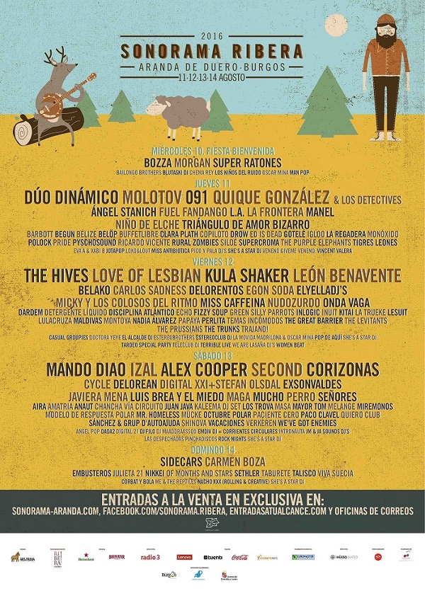 El sábado nos acercaremos a las 14:30 a escuchar el electropop de la chilena Javiera Mena, aún a riesgo de retrasar nuestro almuerzo. En la Plaza del Rollo no vamos a faltar ante Digital 21. Miguel López Mora siempre nos ha parecido que merece mejor suerte. Un artista como no los hay en abundancia y que hará doblete por la tarde en su interesantísimo nuevo proyecto que comparte con Stefan Olsdal (Placebo). Maga, Second, Luis Brea, y pasaremos – aunque sólo sea por los viejos tiempos – por donde anden Mando Diao, para ver cómo andan de forma, ya que hace años que no les vemos en directo. Y corriendo a las primeras filas para ver a uno de nuestros héroes, Álex Cooper. Autor de muchas de las mejores canciones pop de nuestra historia musical, anda celebrando su nada más y nada menos que 30 aniversario en el mundo de la música. Corizonas para rockear y Delorean para bailar, son gran final para un Sonorama al que estamos deseando llegar para enfundarnos una sudadera o chaqueta y huir de calor sofocante que nos derrite el cerebro.