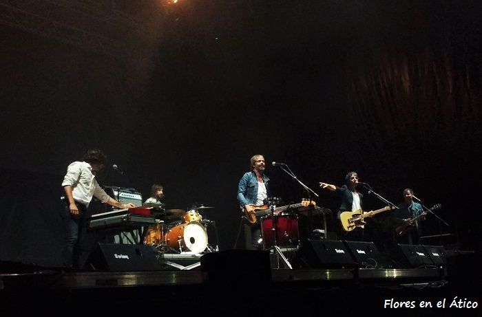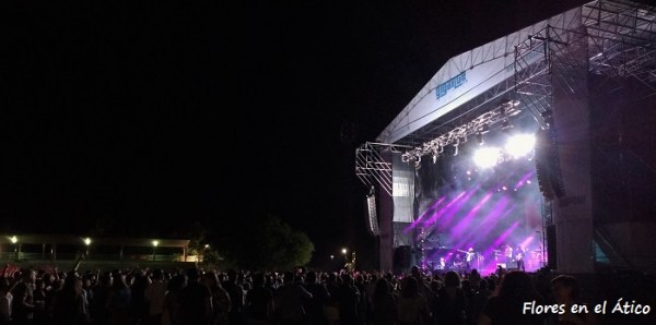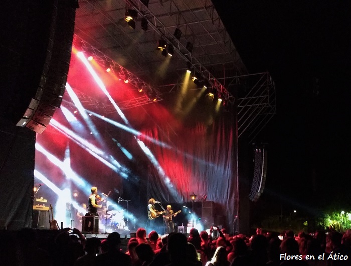 Quique González y sus Detectives salían a un escenario perfectamente vestido con farolas de luces intermitentes y con la elegancia de su apuesta (a parte del uniforme que llevaban). Suenan entre otras Kamikazes Enamorados y Dónde está el Dinero, dedicada al ex-ministro Soria por su nuevo puesto en el Banco Mundial. Nina de Morgan (que habían tocado a primera hora de la tarde) acompañó a Quique en varias canciones, entre las que estaba Charo. Tras presentar a la magnífica banda (a veces con tres guitarras, a veces con dos y violín, coros…), Vidas Cruzadas, para terminar un concierto del que pudimos comprobar que también se disfruta en espacios abiertos.