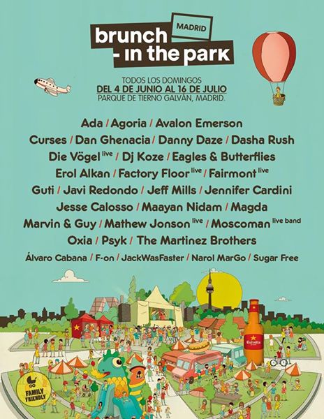 Tras su exitosa primera edición de 2016, vuelve Brunch in the Park por segundo año a Madrid. Todos los domingos, desde mañana 4 de junio y hasta el 16 de julio, podremos disfrutar de los mejores artistas de la electrónica nacional e internacional de 13:00 a 22:00 en el Parque de Tierno Galván y hacerlo junto con los más pequeños de 13:00 a 19:00 en su edición infantil Petit Brunch; actividades y talleres (hinchables, camas elásticas, futbolines, deportes, hula hoop, malabares, yoga) para que toda la familia pueda disfrutar de la música y la gastronomía al aire libre. Las entradas para Petit Brunch se compran en taquilla el mismo día del evento.