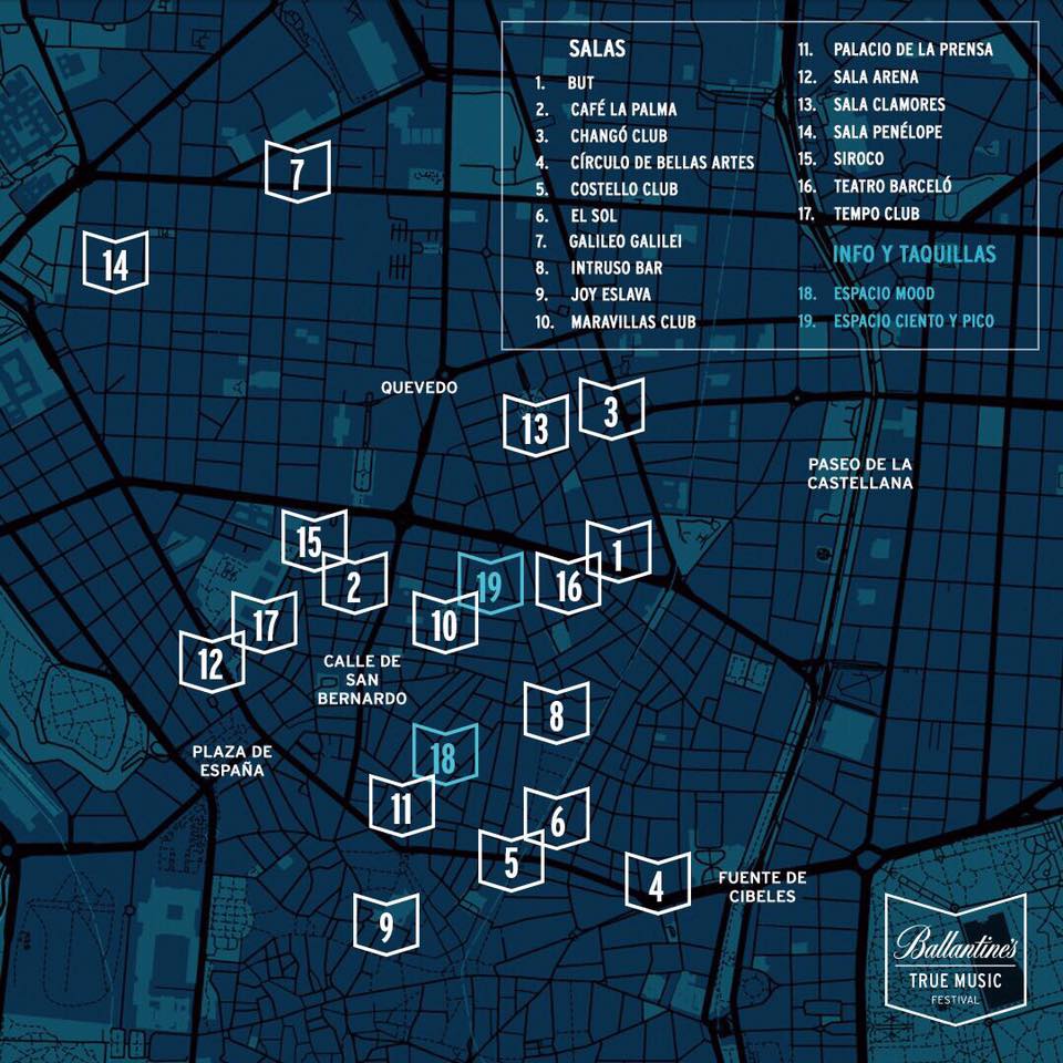 Ballantine’s True Music Festival es un nuevo concepto de festival urbano con más de 140 artistas nacionales e internacionales – de distintos géneros musicales, que se celebrará los días 9 y 10 de Junio en 17 salas del centro de Madrid entre las 18:30 de la tarde y las 06:00 de la mañana.