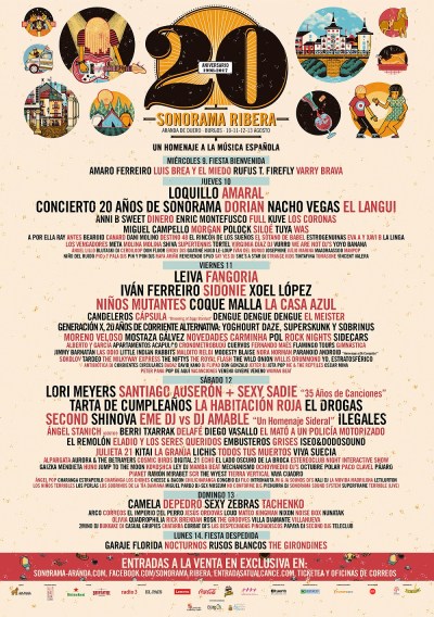 A primeros de mes confirmaron el cartel definitivo (con la incorporación de Second, Luis Brea y el Miedo, Grises, Gaizka Mendieta, Polock, Digital 21, Virginia Diaz DJ, Rick Brendan, Jump to the Moon y The Wild Onion, además de un gran número de DJ’s) y los horarios de la que será la edición 20 #SonoramaRibera20