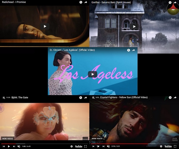 Varios grupos o solistas han tenido más de un videoclip luchando por entrar en la lista de los mejores vídeos del año, lo que evidencia el mimo que estos ponen en todo lo que está firmado con su nombre. Radiohead, Gorillaz, Björk y Crystal Fighters no son precisamente novatos en esto de la música filmada y sólo hay que echar un vistazo a su videografía anterior para comprobarlo.