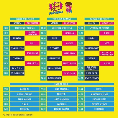 Festivales · Música SANSAN FESTIVAL 2018 / Benicàssim 4 enero 201815 marzo 2018 Flores en el Ático 🌐 SANSAN FESTIVAL 2018 🗓 29 – 31 marzo 2018 📌 Benicàssim (Castellón) 🎤 Cartel 🎤 Cartel por días 🕒 Horarios Compartir Haz clic para compartir en Facebook (Se abre en una ventana nueva) Facebook Haz clic para compartir en X (Se abre en una ventana nueva) X Haz clic para compartir en WhatsApp (Se abre en una ventana nueva) WhatsApp Me gusta Cargando... Compartir Haz clic para compartir en Facebook (Se abre en una ventana nueva) Facebook Haz clic para compartir en X (Se abre en una ventana nueva) X Haz clic para compartir en WhatsApp (Se abre en una ventana nueva) WhatsApp Me gusta Cargando...