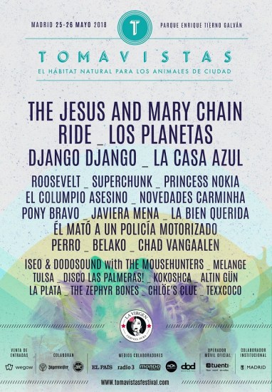 Este año se han vuelto a superar y visitarán el Parque Enrique Tierno Galván los días 25 y 26 de mayo, bandas internacionales que llevan encabezando festivales décadas como The Jesus and Mary Chain y Ride, las dos con un disco nuevo más que aceptable publicado el año pasado o Superchunk que lo ha lanzado este 2018. Además en el apartado foraneo grupos tan de moda como Django Django o unos de nuestros favoritos, los argentinos, El mató a un policía motorizado.