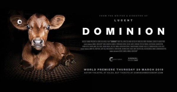 El 29 de marzo se estrenó a nivel mundial Dominion, un documental escrito y dirigido por Chris Delforce (Lucent) que denuncia el abuso y el maltrato al que los animales no humanos están sometidos por los humanos en distintas facetas: mascotas, vida salvaje, investigación científica, entretenimieno, vestimenta y alimentación. La película cuestiona la moralidad del dominio de la humanidad sobre el reino animal solo por creernos superiores.