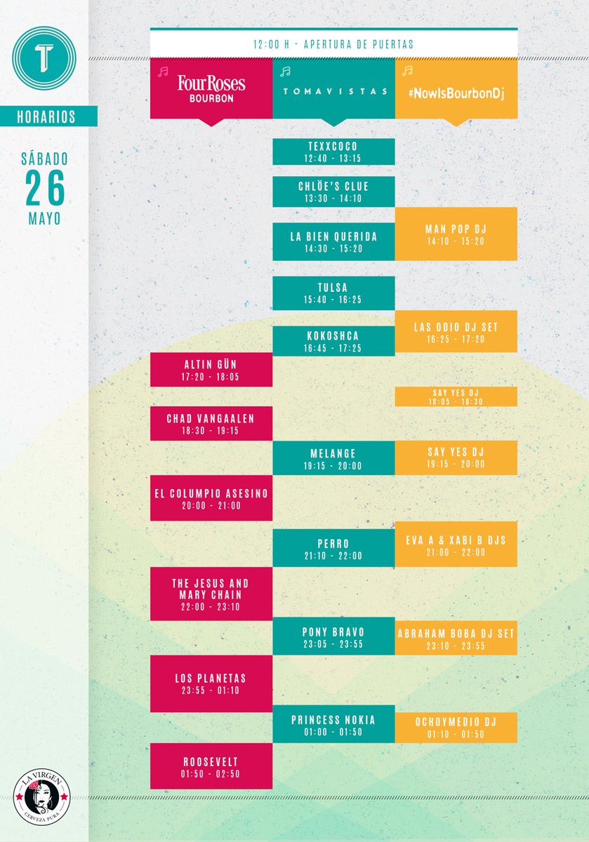 Ahora que ya se han publicado los horarios para el Festival Tomavistas 2018, podemos hacer nuestro particular planning para intentar no perdernos ninguno de los artistas que más nos interesan, cosa más factible que en otros festivales con muchos más escenarios y conciertos que se solapan.