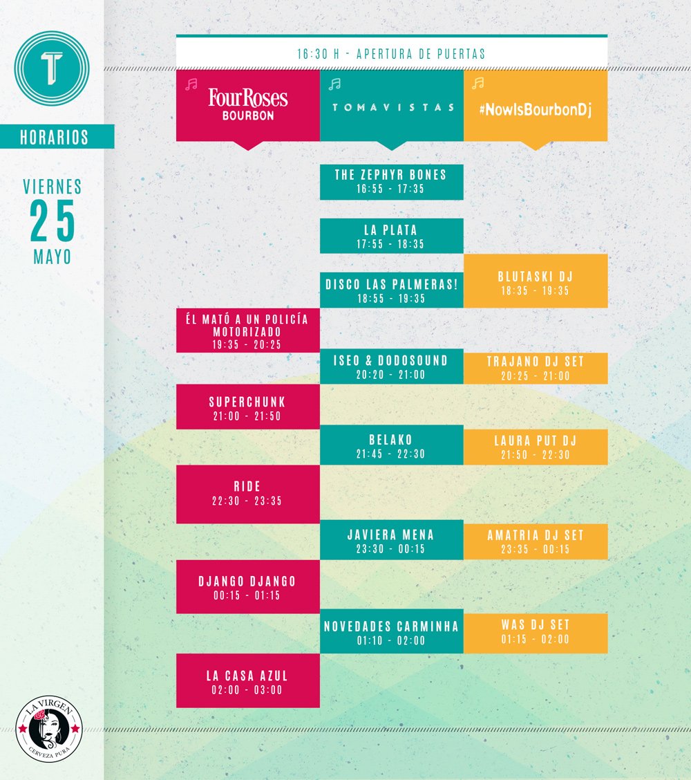 El viernes 25 de mayo hay que hacer lo posible por llegar a la actuación de los argentinos El Mató a un Policía Motorizado a eso de las 19:30h y ya sin descanso de un escenario a otro con Iseo & Dodosound, Superchunk, Belako, Ride, Javiera Mena, Django Django y Novedades Carminha antes de un fin de fiesta con La Casa Azul a las 2:00h.
