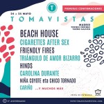 Y han llegado las primeras confirmaciones del Tomavistas con Hinds, Carolina Durante, Beach House, Cigarettes After Sex, Triángulo de Amor Bizarro, Friendly Fires, Niña Coyote eta Chico Tornado y Cariño. Una primera tanda más que interesante para celebrar el quinto aniversario de un festival plenamente consolidado en el indie internacional. Del Polifonik Sound con Second y Tu Otra Bonita, La Casa Azul para el Festival de los Sentidos, Ángel Stanich que estará en el Conexión Valladolid y el Ebrovisión que contará con Novedades Carminha y Morgan.