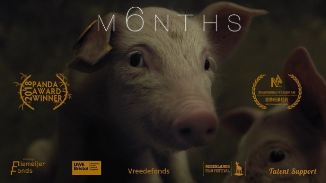 Los 12 minutos del corto muestran el punto de vista de un lechón que crece en una granja industrial, sin comentarios ni voz en off. Esta perspectiva sigue la vida de un animal de granja anónimo, que en la industria de la agricultura intensiva se ha convertido en un mero producto de consumo, sin importar su inteligencia y sus emociones. M6NTHS invita al espectador a pensar sobre cómo tratamos a los animales de granja. Schellekens realizó este trabajo mientras estudiaba, y ganó en octubre el Premio Panda al Mejor Cortometraje. Se trata del galardón más importantes para películas de vida salvaje, también conocido como el Oscar Verde (Green Oscar). El título 6 MESES es la edad en la que un cerdo es sacrificado en la industria cárnica. En la naturaleza un cerdo puede vivir hasta diez años.
