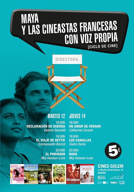 Los días 12 y 14 de marzo los Cines Golem de Madrid han aprovechado el estreno de la nueva película de Mia Hansen-Løve (El Porvenir, Un amour de jeunesse) para programar un imprescindible ciclo de cine francés, con entradas a sólo 5 euros, dirigido por mujeres (además de Mia Hansen-Løve, Valérie Donzelli, Emmanuelle Bercot, Catherine Corsini, Claire Denis).