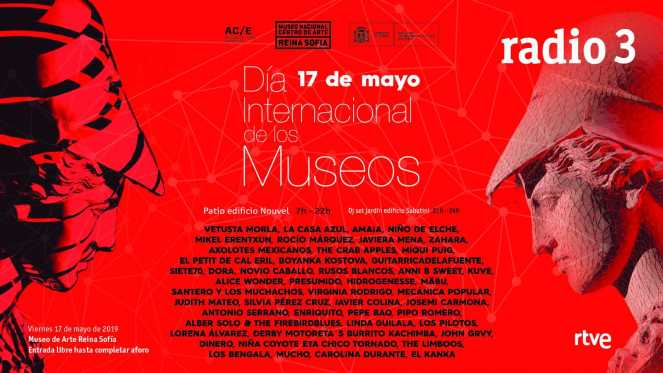 Con motivo del Día Internacional de los Museos (18 de mayo, jornada celebrada mundialmente desde 1977 para sensibilizar al público sobre el papel de los museos en el desarrollo de la sociedad) Radio 3 se traslada un día antes al Museo Nacional Centro de Arte Reina Sofía de Madrid con una programación especial donde la cultura y la música serán las grandes protagonistas.