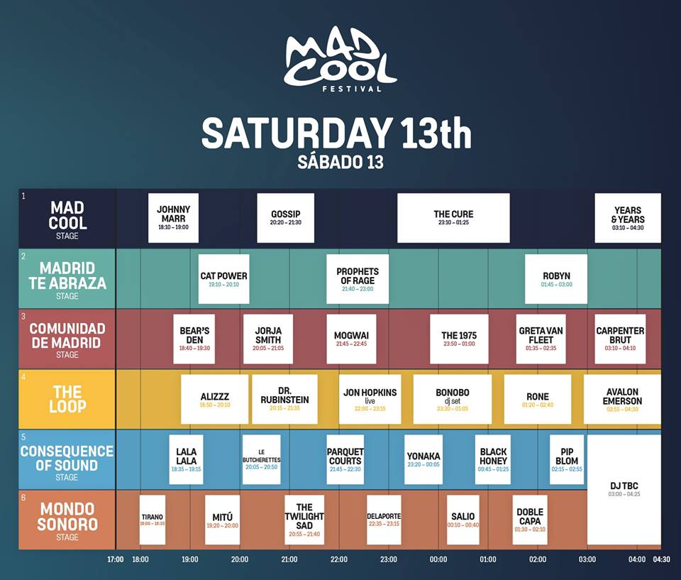 El SÁBADO también nos enseñarán de qué va esto de la música por ejemplo Johnny Marr y Cat Power. No nos podemos perder a varios de los fenómenos de los últimos meses como Greta Van Fleet y Jorja Smith, al supergrupo Prophets of Rage y por supuesto al Gran Cabeza de cartel de este año, los mitiquérrimos The Cure. ¿Cuánto tocarán este año? ¿Llegarán a las 3 horas?.