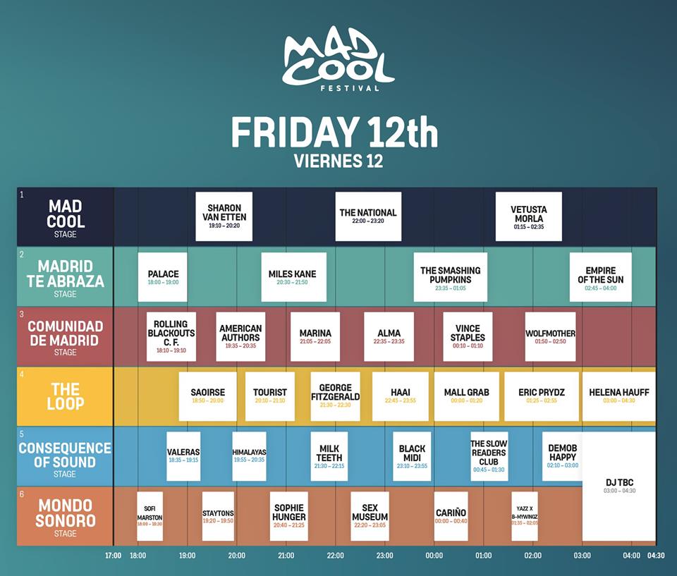 El VIERNES asistir a nueva lección de clase a cargo de Sharon Van Etten o The National; a una del mejor Rock & Roll nacional con Sex Museum; ver como la casi completa formación original de The Smashing Pumpkins resucita sus mejores momentos o a la ya casi confirmada banda nacional más grande de todos los tiempos tomar el Mad Cool (si, si, Vetusta Morla).