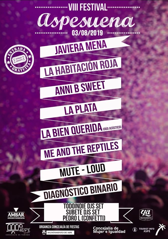 Festivales · Música FESTIVAL ASPESUENA 2019 / Aspe 11 julio 201927 julio 2019 Flores en el Ático 🌐 FESTIVAL ASPESUENA 2019 🗓 3 agosto 2019 📌 Aspe (Alicante) 🎤 Cartel 🕒 Horarios Compartir Comparte en Facebook (Se abre en una ventana nueva) Facebook Compartir en X (Se abre en una ventana nueva) X Compartir en WhatsApp (Se abre en una ventana nueva) WhatsApp Me gusta Cargando... Compartir Comparte en Facebook (Se abre en una ventana nueva) Facebook Compartir en X (Se abre en una ventana nueva) X Compartir en WhatsApp (Se abre en una ventana nueva) WhatsApp Me gusta Cargando...