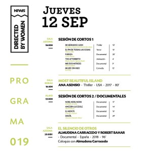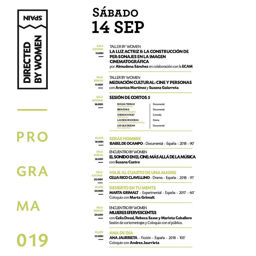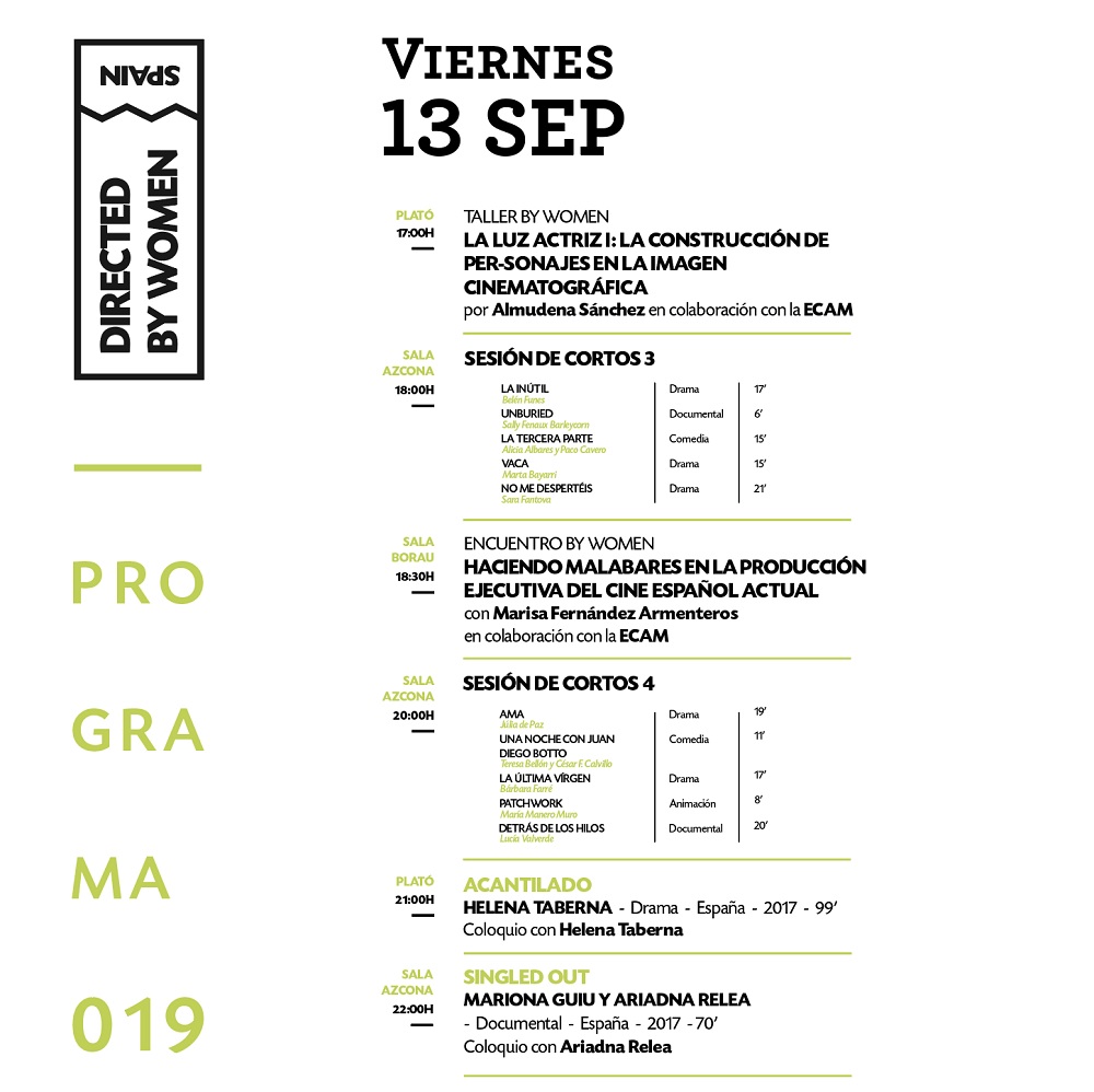 5ª edición con un total de 50 cineastas. 34 cortometrajes, 7 documentales, 6 películas de ficción, 2 talleres y 4 encuentros para celebrar la fiesta internacional del cine dirigido por mujeres.