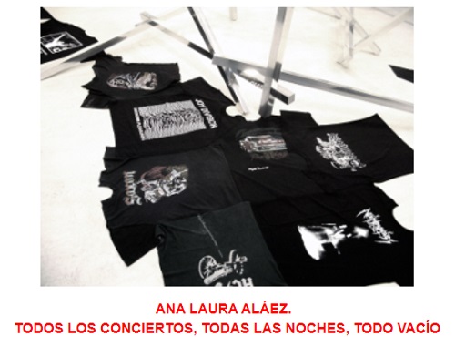 Todos los conciertos, todas las noches, todo vacío reúne algunos de los últimos trabajos de Ana Laura Aláez en diálogo con otros del inicio de su trayectoria. La exposición se propone como un giro al origen, ir al punto de partida para trabajar entre las fisuras de los temas que han acompañado su trabajo en los últimos veinte años: el cuerpo como peana, la peana como escultura, la escultura como canción, la noche como material, la identidad como conflicto, la impostura como posibilidad. La idea es indagar en la búsqueda de representarse como lenguaje, eje de su trabajo en todo este tiempo. En esta ocasión, el proyecto busca hablar desde un lugar elusivo, evitando las alusiones directas, un espacio ruidoso que no tiene que ver tanto con el sonido como con una rebelión calmada. Como traslada entre líneas el título de la exposición, título a su vez de uno de sus trabajos menos conocidos, un lugar contundente y evanescente a la vez.