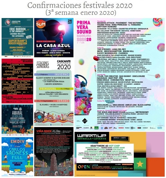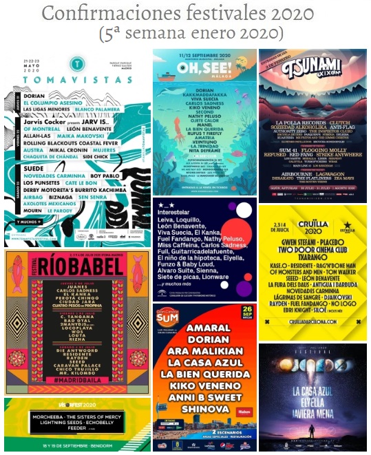 Confirmaciones festivales 2020 (5ª semana enero 2020)