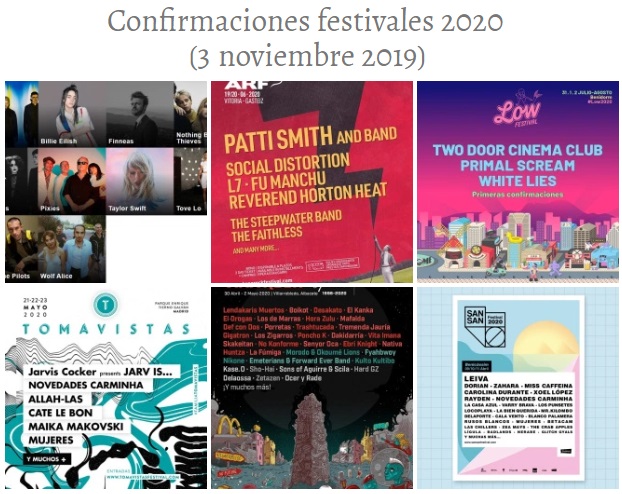 Confirmaciones festivales 2020 (3 noviembre 2019)
