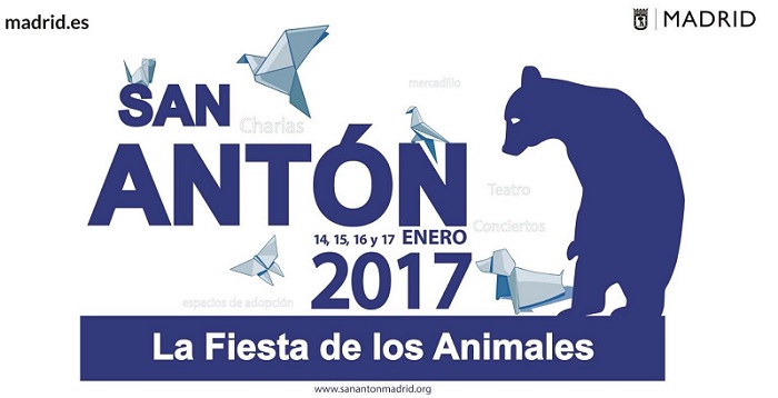 Fiestas de San Antón 2017 para vecinas y vecinos de Madrid de dos o cuatro patas Del sábado 14 al martes 17 de enero celebraremos las Fiestas de San Antón 2017 en Madrid. Cuatro días de fiesta y reivindicación. Unas 30 actividades (charlas, conferencias, mesas informativas, espacios de adopción, teatro, talleres infantiles, conciertos, las tradicionales Vueltas del santo,… Sigue leyendo Fiestas de San Antón 2017 de Madrid. La Fiesta de los Animales